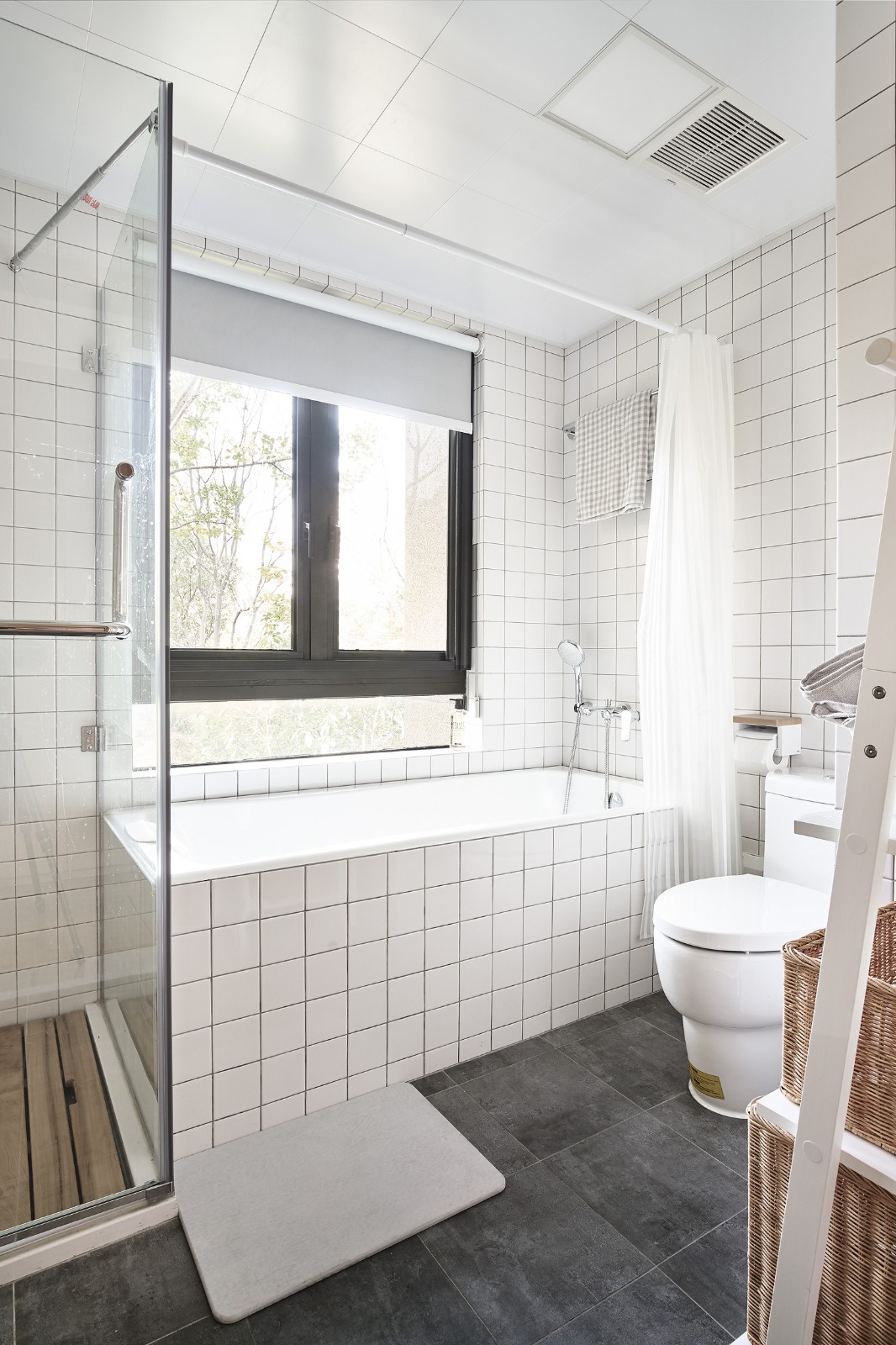 日式小清新風,小白磚營造復古潮流,木色元素增添自然氣息。干濕分離,整潔易打理。